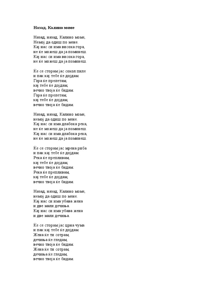 Macedonian Folk Nazad Nazad Kalino Mome Nazad Nazad Kalino Mome Lyrics